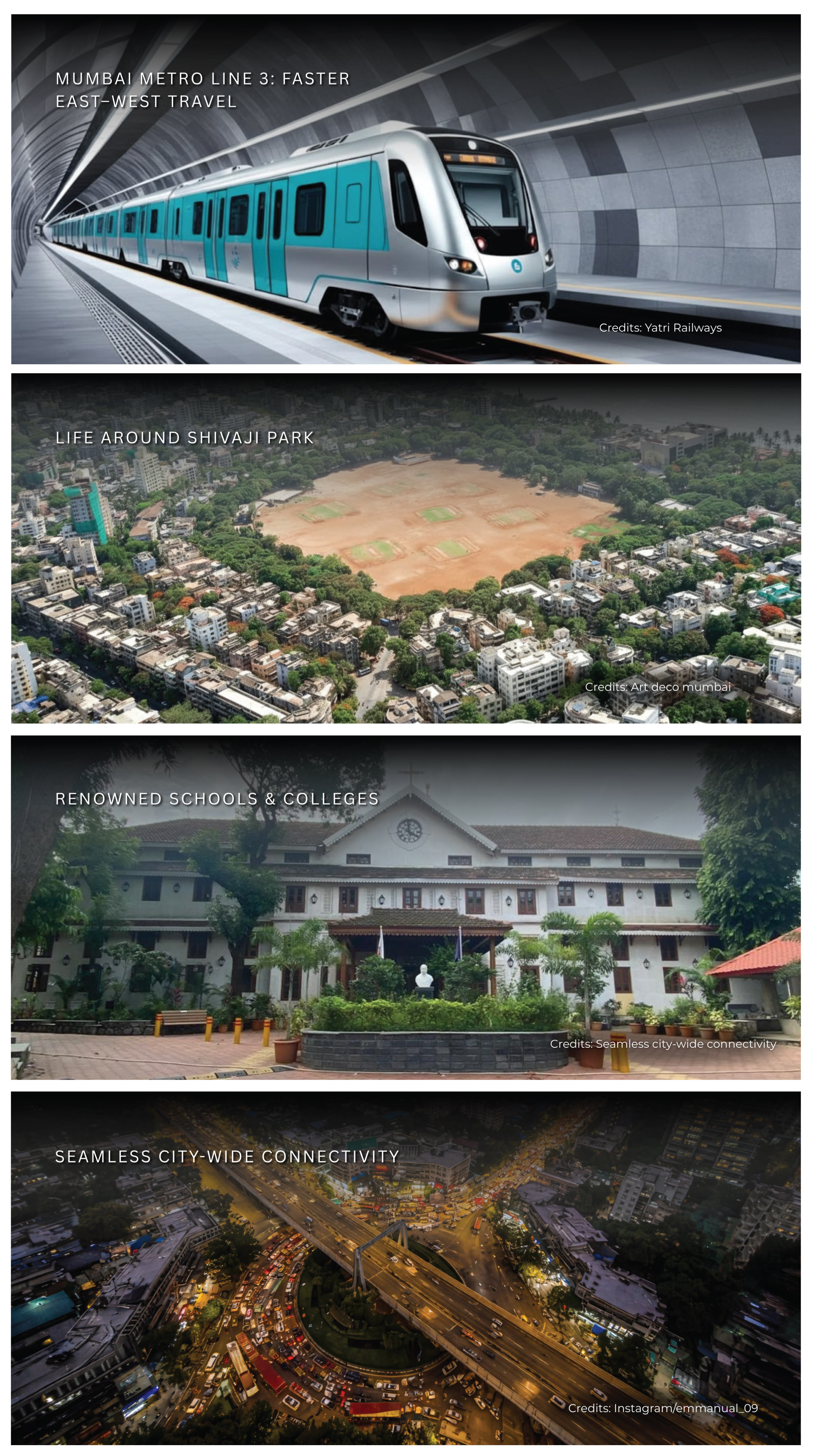 The upcoming Mumbai Metro Line 3 (Aqua Line) enhances east–west travel, offering quicker, congestion-free access to major commercial hubs such as BKC, Worli, and South Mumbai.